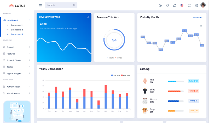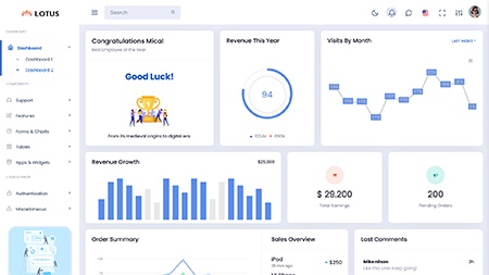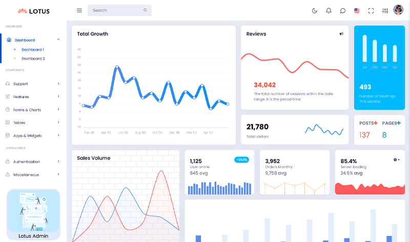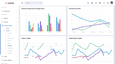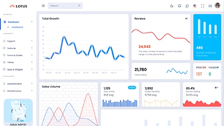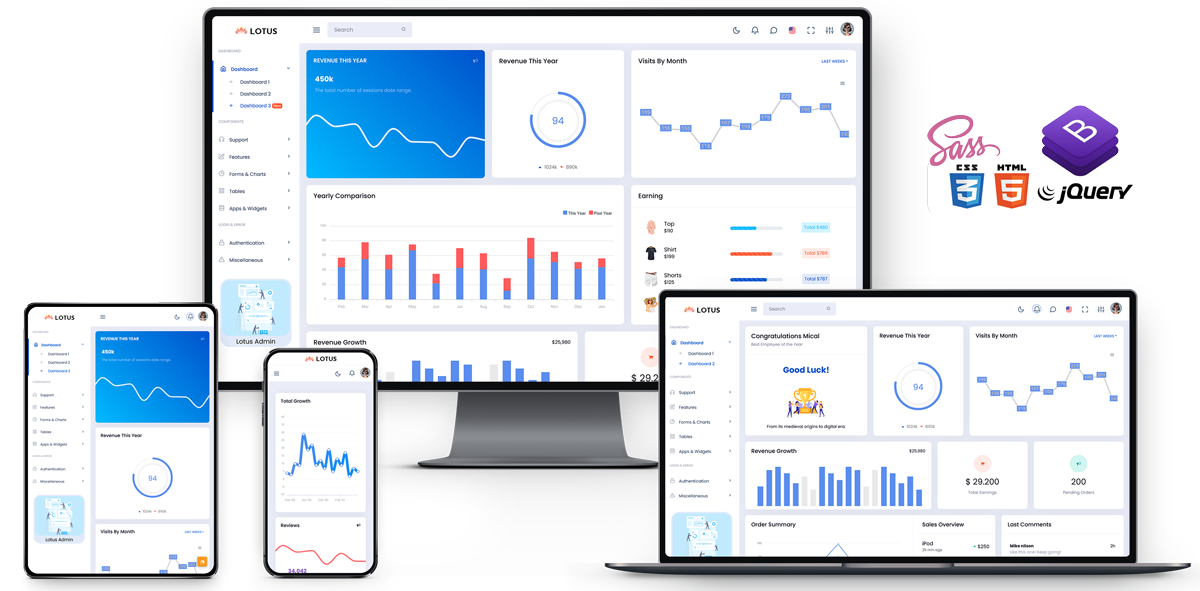 Lotus Admin is flexible and fully customizable. Ready to use on your code, you can easily customize the source files.